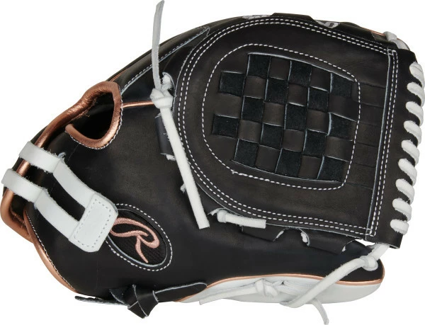 Artfully crafted from quality full-grain leather, the 2021 12-inch Heart of the Hide softball glove offers the same unmatched quality you expect from any HOH glove. Its 12-inch pattern is designed specifically for softball players too. Its large pocket and softer leather construction allow for a quick, easy break-in and game-ready feel. As a result, you’ll be playing consistently better defense in no time at all. In addition, this black shell glove with white trim and rose gold welting and binding features a padded thumb sleeve for optimal comfort, and an adjustable Pull-Strap back. This means you get a ‘custom fit’ and more glove control every inning you’re on the field. If you’re an elite level softball player this glove is perfect for you.