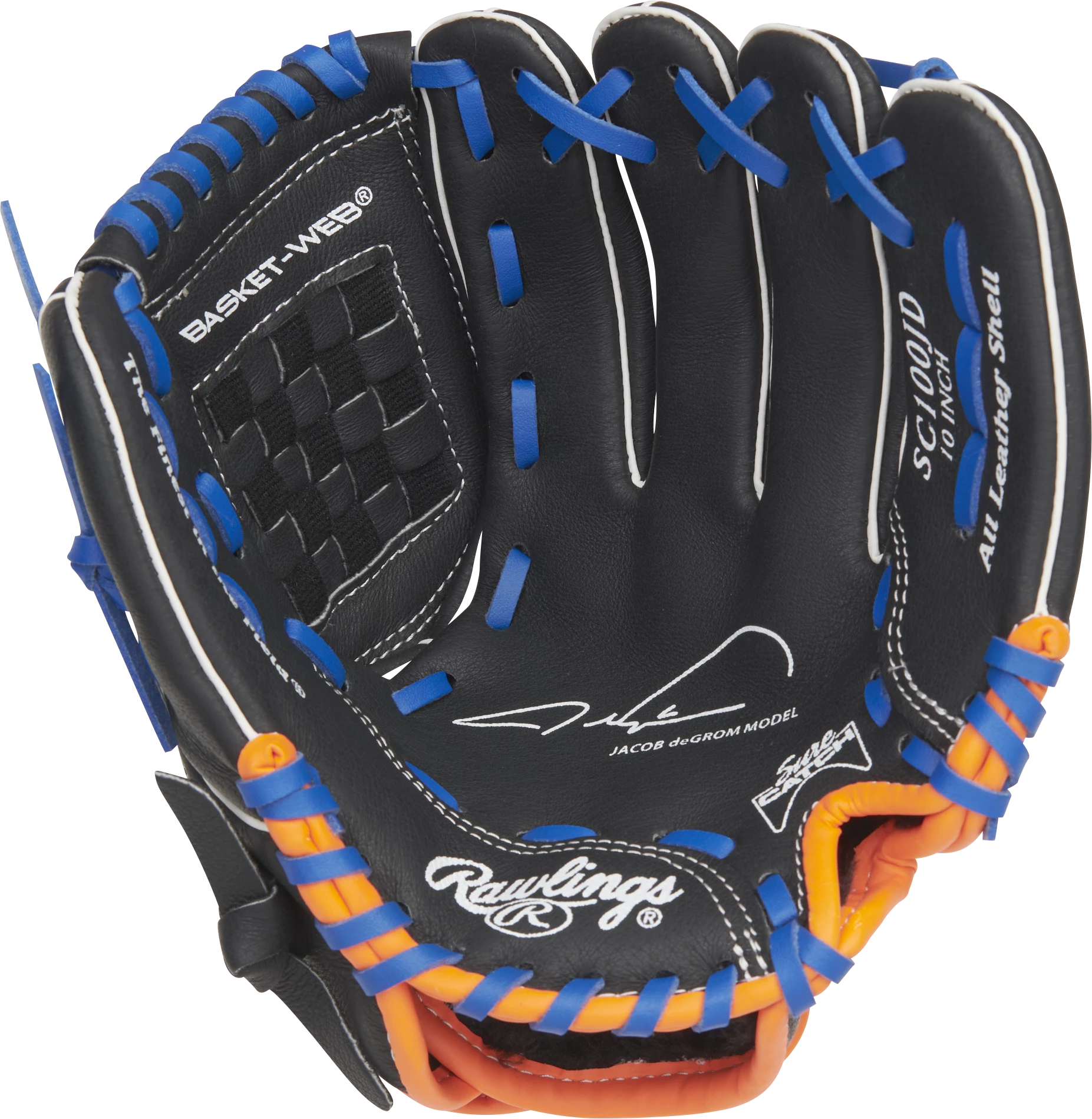 For youth players, getting the right glove to learn the game with is critical. The Rawlings Sure Catch series is built to play easily for ballplayers just starting out on their baseball journey. On top of that, this glove features a printed signature from a big leaguer to inspire your play! For maximum comfort, this Rawlings Sure Catch 10-inch Youth Glove features cushioned finger linings. The soft leather shell enhances durability and pocket formation. In addition, we specially designed the Sure Catch heel to close easier and make catching as easy as possible. This model feature’s a printed signature from superstar Jacob deGrom on the palm, meaning that every time your youth player looks down, he’ll have a role model to look up to. Get your Rawlings 10-inch Youth Glove today!