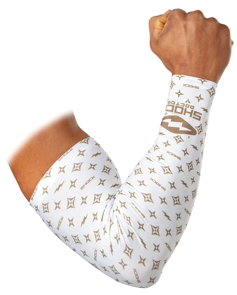 Make your mark with a Shock Doctor Showtime Compression Arm Sleeve. Featuring exclusive designs, each compression sleeve is made to keep your arm muscles warm and active, helping you push through while also protecting your skin from turf burn and abrasions. Stay cool and dry when it matters most. Sold as a single sleeve, fits right or left arm.
